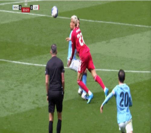 第38分钟,范戴克踢倒奥赖利送点,哈兰德点球破门,曼城1-0利物浦!
